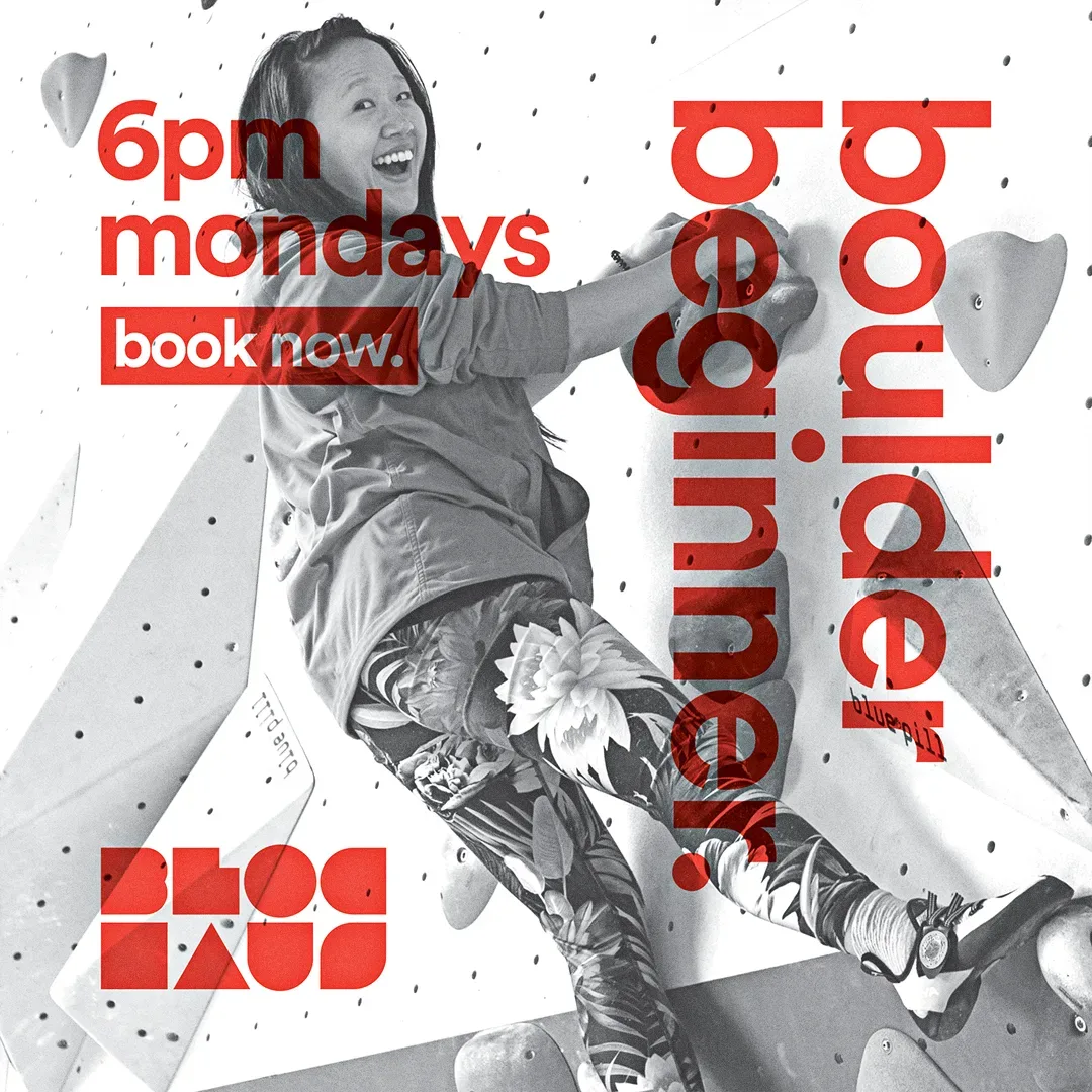 whether it’s your first time on the wall or you’re looking to shake some nerves, boulder beginner is for you!